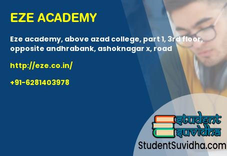 EZE Academy, Above Azad College, Part 1, 3rd Floor, Opposite AndhraBank, Ashoknagar X, Road