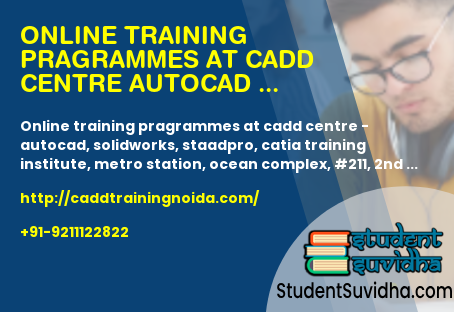ONLINE Training pragrammes at CADD CENTRE - Autocad, Solidworks, Staadpro, Catia Training Institute, Metro Station, Ocean Complex, #211, 2nd Floor, near Noida, Sector 18, Noida, Uttar Pradesh 201301, India