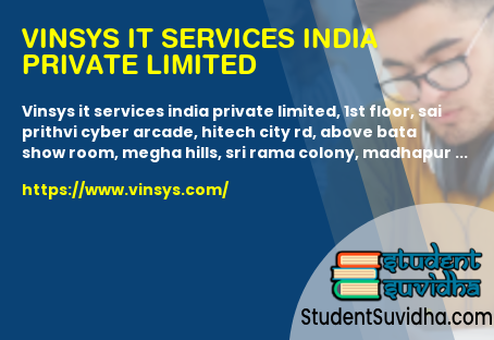 Vinsys IT Services India Private Limited, 1st floor, Sai Prithvi Cyber Arcade, Hitech City Rd, Above Bata show room, Megha Hills, Sri Rama Colony, Madhapur