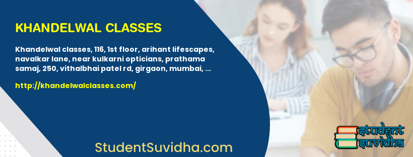Khandelwal Classes, 116, 1st Floor, Arihant Lifescapes, Navalkar Lane, near Kulkarni Opticians, Prathama Samaj, 250, Vithalbhai Patel Rd, Girgaon, Mumbai, Maharashtra 400004