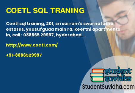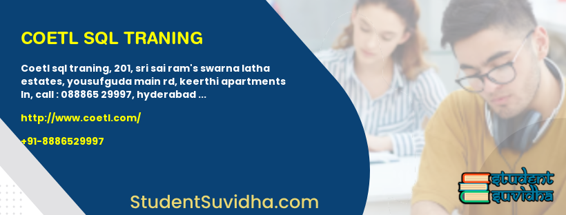 COETL SQL Traning, 201, Sri Sai Ram's Swarna Latha Estates, Yousufguda Main Rd, Keerthi Apartments Ln, Call : 088865 29997, Hyderabad
