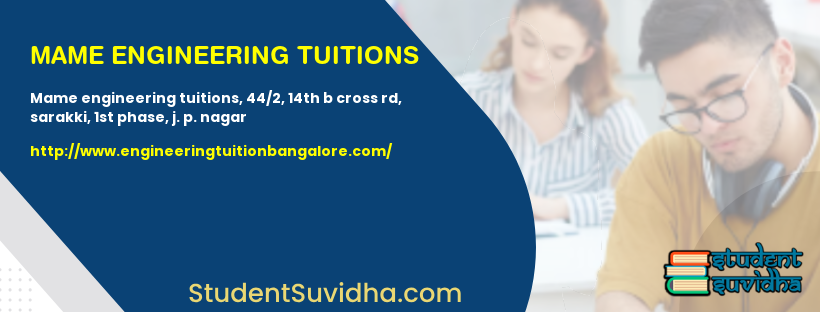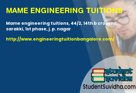 One of the best tuition centres for engineering in Bangalore with amazing faculty and personal attention.And it is situated just next to metro. So. one can easily reach there.My experience with MAME was great and all sessions were interactive with complete support.I have cleared my back subjects and all credits goes to the faculty.Hence as an engineering student you should obviously go there.