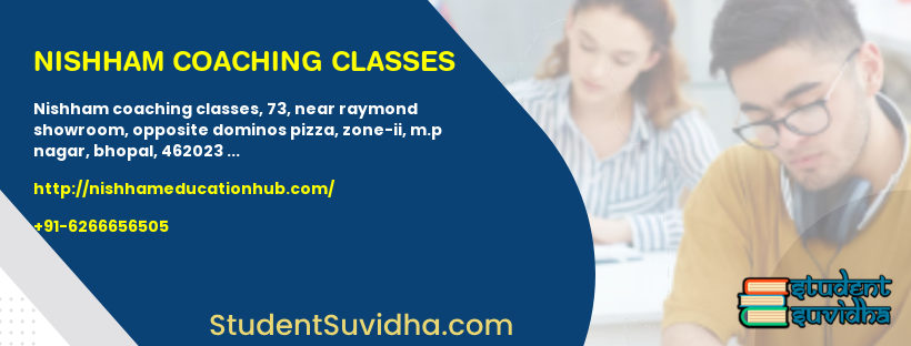 Nishham Coaching Classes, 73, Near Raymond Showroom, Opposite Dominos Pizza, Zone-II, M.P Nagar, Bhopal, 462023