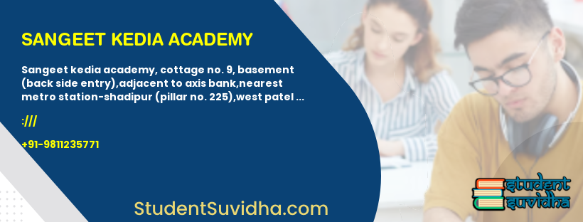 Sangeet Kedia Academy, Cottage No. 9, Basement (Back Side Entry),Adjacent to Axis Bank,Nearest Metro Station-Shadipur (Pillar No. 225),West Patel Nagar, New Delhi-110008
