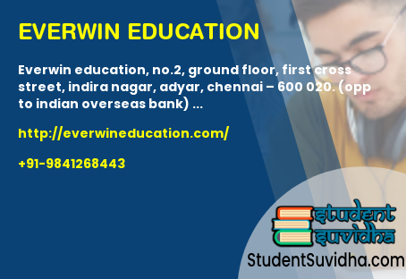 Everwin Education, No.2, Ground Floor, First Cross Street, Indira Nagar, Adyar, Chennai – 600 020. (Opp to Indian Overseas Bank)