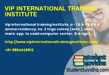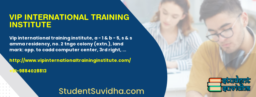 VIP International Training Institute, A - 1 & B - 5, S & S Amma Residency, No. 2 TNGO Colony (Extn.), Land Mark: Opp. to CADD Computer Center, 3rd Right, Adambakkam, Chennai, 600088, Tamil Nadu