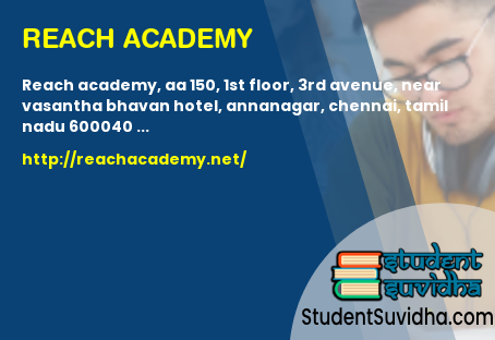Reach Academy, AA 150, 1st Floor, 3rd Avenue, Near Vasantha Bhavan Hotel, Annanagar, Chennai, Tamil Nadu 600040