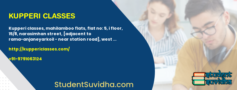 Kupperi Classes, Mahilamboo Flats, Flat No: 5, I Floor, 15/8, Narasimhan Street, [Adjacent to Rama-AnjaneyarKoil - near Station Road], West Mambalam, Chennai.