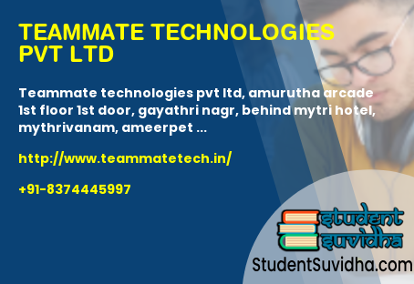 Teammate Technologies Pvt Ltd, Amurutha Arcade 1st Floor 1st Door, Gayathri Nagr, Behind Mytri Hotel, Mythrivanam, Ameerpet