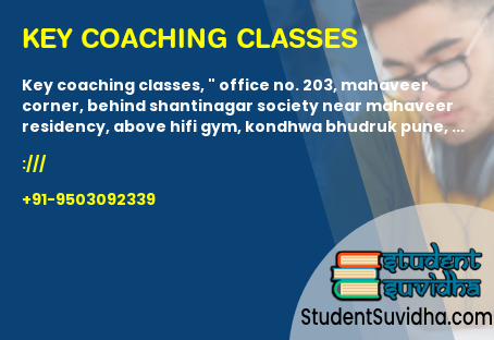 KEY Coaching Classes, " Office No. 203, Mahaveer Corner, Behind Shantinagar Society Near Mahaveer Residency, Above HiFi Gym, Kondhwa Bhudruk Pune, Maharashtra 411048 India"