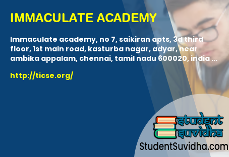 Immaculate academy, No 7, Saikiran Apts, 3D Third floor, 1st Main Road, Kasturba Nagar, ADYAR, near Ambika Appalam, Chennai, Tamil Nadu 600020, India